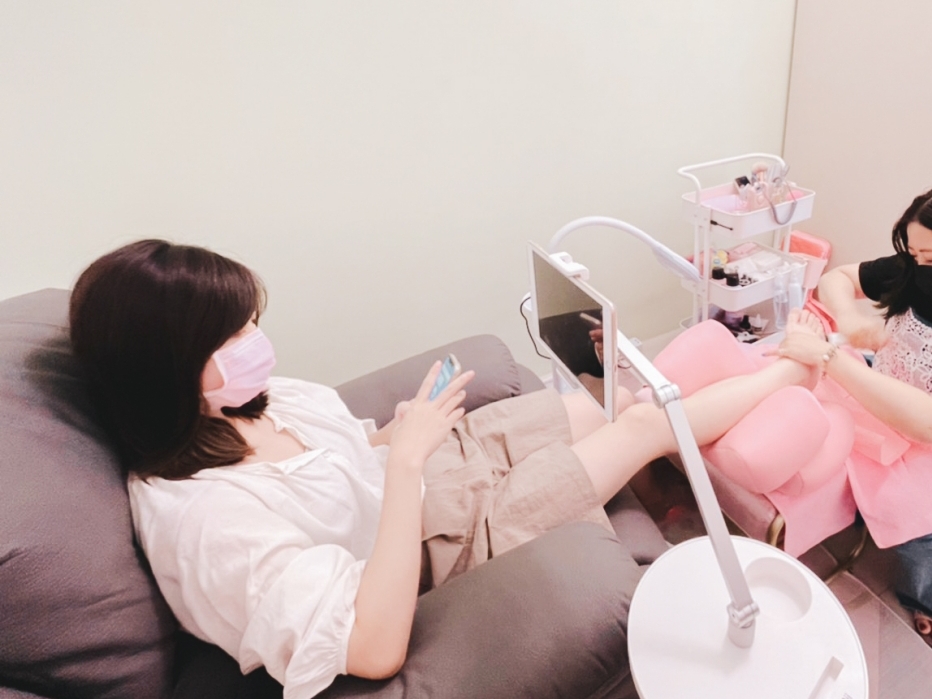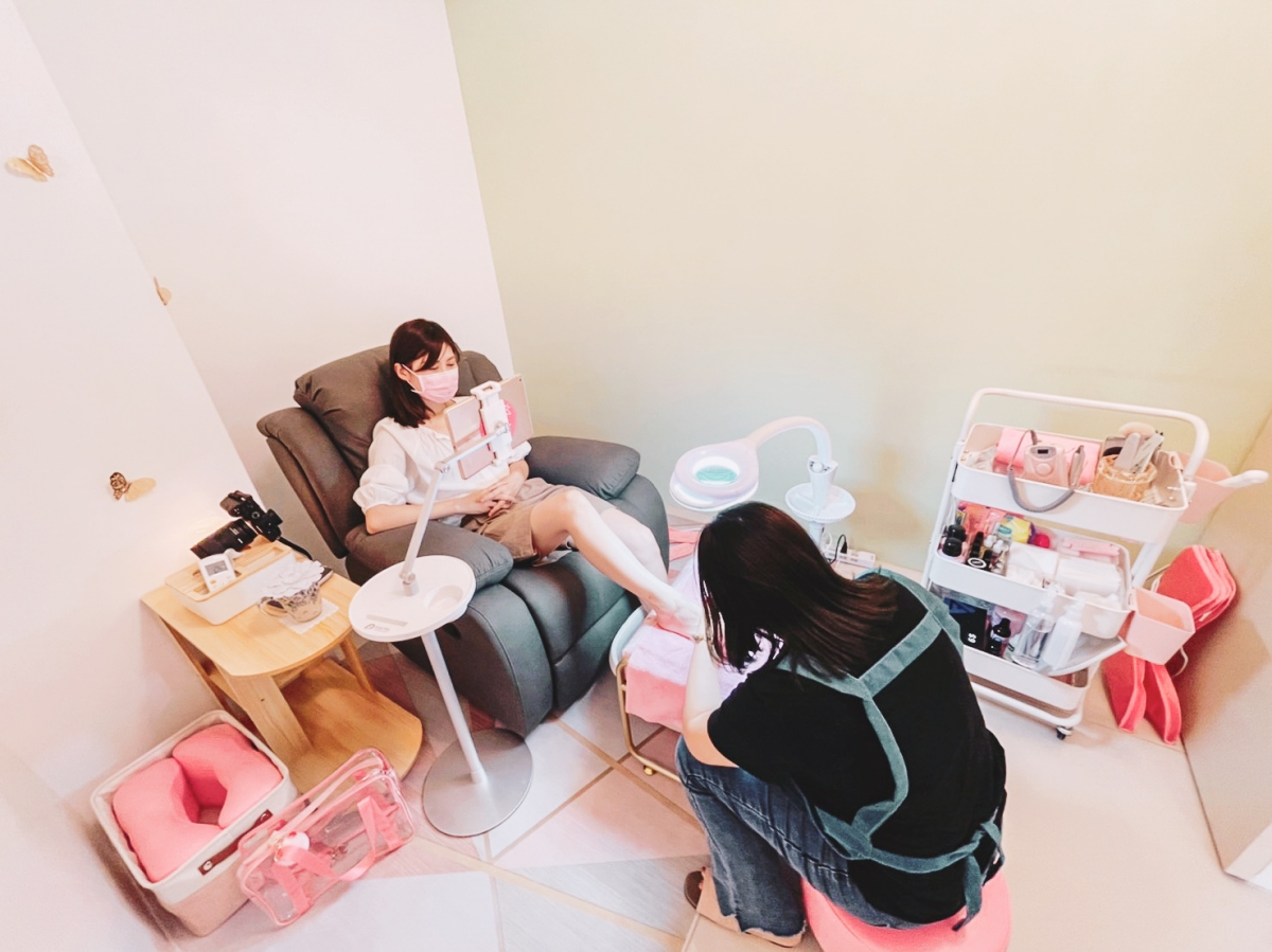這次我選擇了足部保養與單色凝膠,超久沒有保養足部,真的很需要大保養一下~尤其我夏天很喜歡穿拖鞋、涼鞋,容易有摩擦,腳部就比較容易粗糙,趁著這次阿福有人照顧,我來好好的放鬆一下!交給 Una 專業美甲師~暖呼呼的精油足浴、甘皮清潔、精油舒壓按摩、滋潤足膜熱敷⋯⋯實在是太享受了!最後上我最喜歡的裸色系凝膠,不用再裸甲穿拖鞋出門,太開心了!在過程中可以感受到 Una 很專業也很細心,結束也提醒我,可以多擦乳液,幫助延長足部柔嫩的狀態哦!