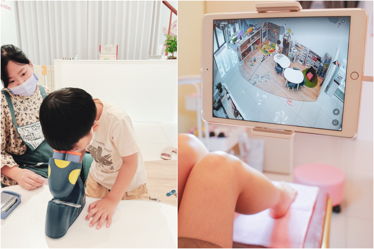 老師會引導、陪伴孩子們一起在玩樂中學習,也會有固定的時間給孩子喝水、上廁所、休息,我覺得很棒!而且老師很有耐心,也非常溫柔,離開的時候也會和家長分享孩子的狀態,可以感受到老師的用心。媽媽真的可以在樓上好好的放輕鬆,享受自己的悠閒時光!