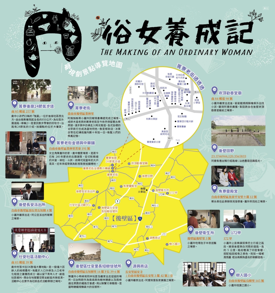 先簡單看看台南觀光局做的俗女養成記景點地圖,很多主要場景通通都是在台南後壁區,來到陳嘉玲養成的家鄉,不妨在手機裡下載一下,可以玩得更豐富。