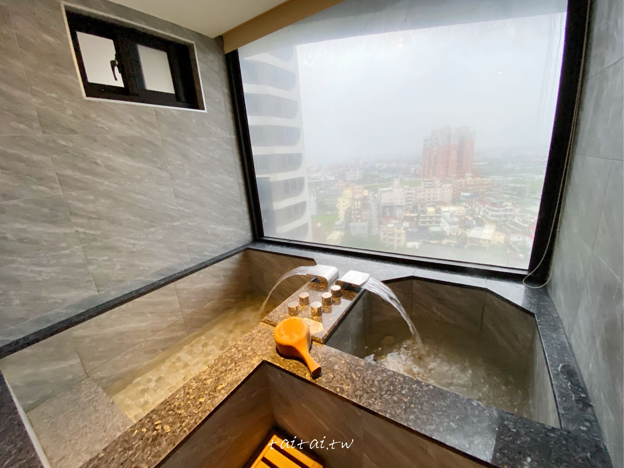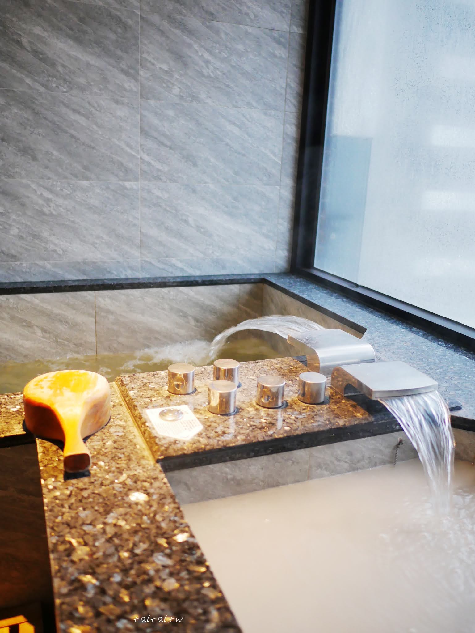 先前也在其他旅館體驗過奈米牛奶浴的有趣觸感,微小的氣泡會附在皮膚上,據說這樣可以去角質達到美容效果,建議先泡奈米牛奶浴、再泡溫泉。溫泉池也有大片窗景,雖然外透霧茫茫,但對於重視採光的我來說,也是很棒的一件事。(但提醒大家沒有使用時一定要把它關起來,如果有不會使用或是疑似故障也可以撥打櫃檯電話協助排除)