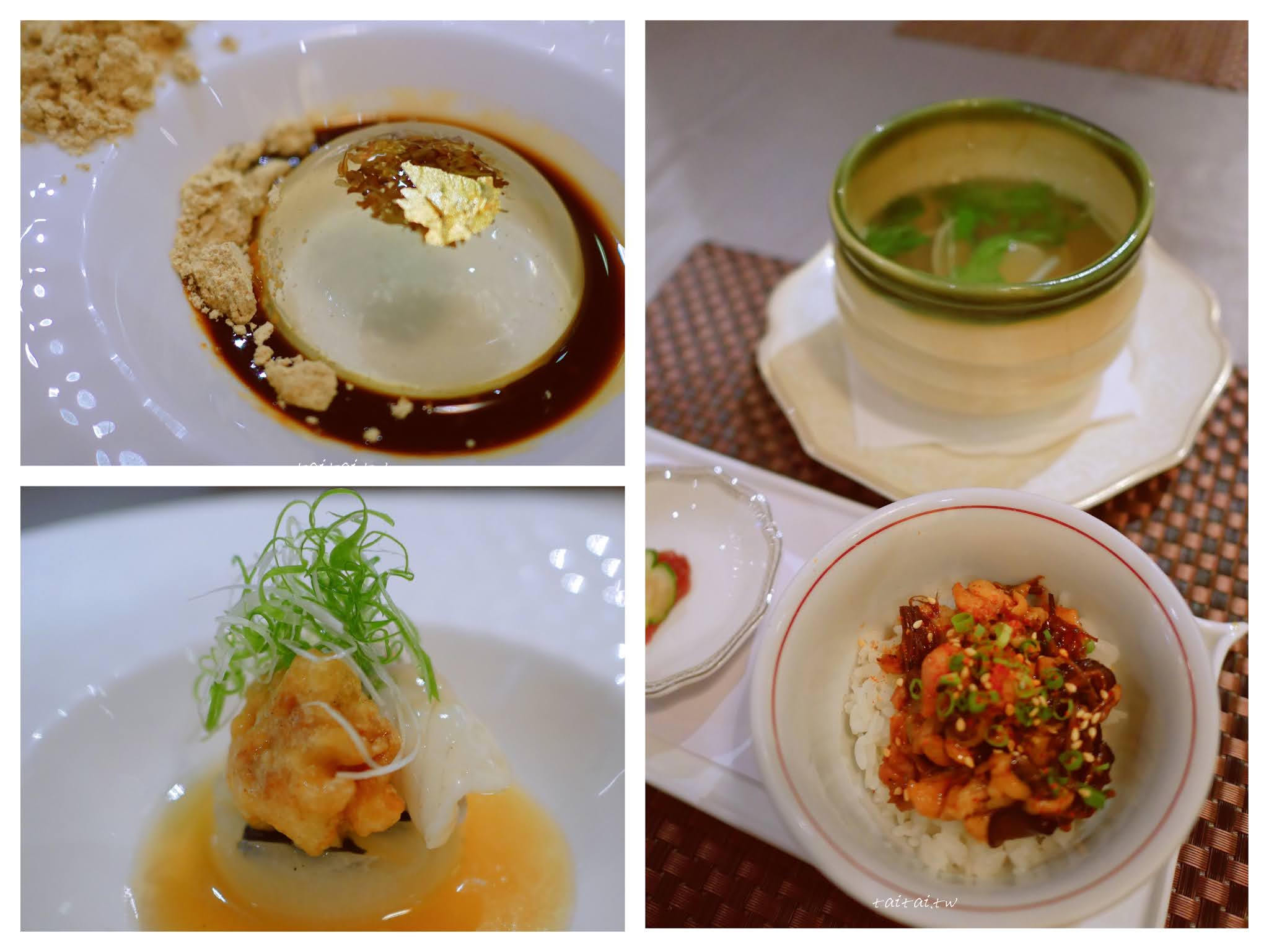 一共有十道菜,每道都是精緻好入口,整體來說的餐飲調性,是在日式融合了台灣人的飲食習慣,一頓飯吃下來我最喜歡的是燻烤明蝦佐海膽醬,接著則是上選刺身,漁獲的品質都很好,不愧是出產海鮮的城鎮。服務人員也會在上菜時,介紹使用了哪些宜蘭在地食材,比如使用了三星蔥來製作蔥油。最後一道甜點是撒上金箔的桂花凍,軟嫩光滑的凍體配上黃豆粉的口感很有層次。