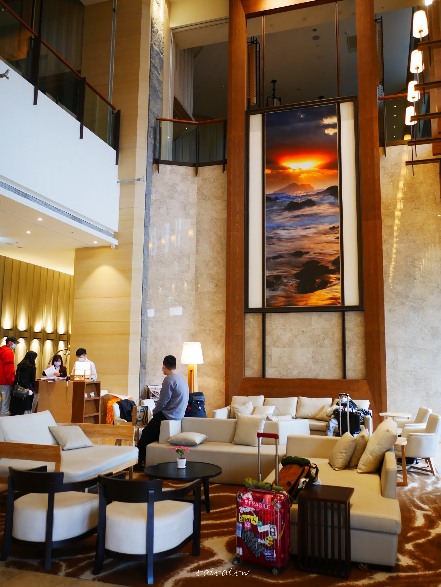 搭乘火車抵達羅東。村卻國際溫泉酒店距離火車站/客運站很近,綿綿細雨中拉著行李箱走大約6~8分鐘便可抵達,24層樓高的村卻完全是蘭陽平原的地標建築、路痴我不用看導航也可以順利抵達。正是聖誕節慶,大廳不免俗也放置了聖誕樹。寬敞的大廳給人良好的第一印象,懸掛在兩旁牆壁上的宜蘭風景圖,也可看出村卻董事長這位宜蘭女婿對宜蘭的熱愛。