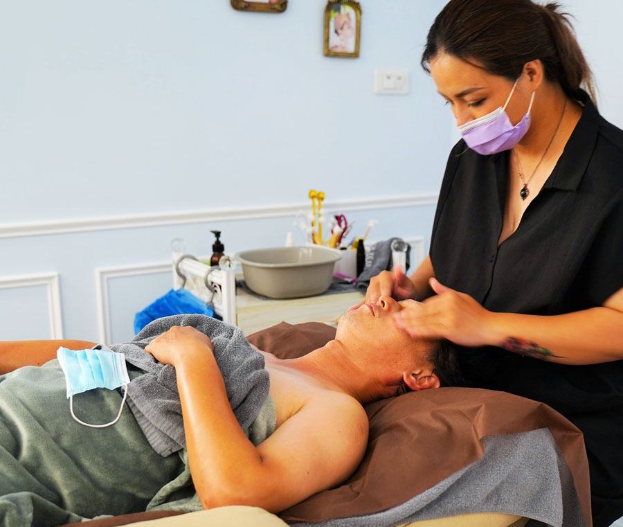 搭配徒手按摩、刮痧舒緩整個頭部、上半身的肩頸放鬆,更能達到真正的舒壓
