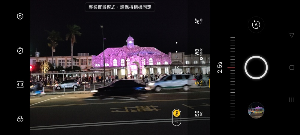 夜景模式可以選擇 AI 或是 PRO 模式,Ai 的部分就是透過軟體幫你計算曝光秒數,PRO 則是自己依照經驗去調整曝光時間。另外 GT Neo2 還可以手持拍攝夜景,只要稍微屏住呼吸等待拍攝完成,些微的晃動都還是可以拍出成功的照片。