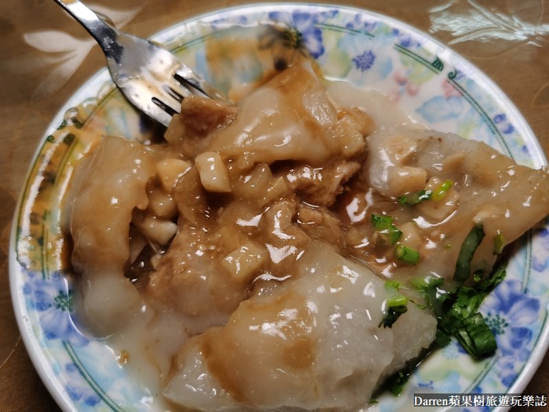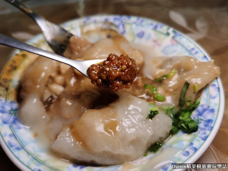 這趟旅行我們停留在彰化又來到埔里,也吃了不少家肉圓,整個快變成肉圓之旅,上桌的肉圓可以看到上面有淋上兩種醬料,再加上香菜,油泡過後肉圓外皮很Q彈