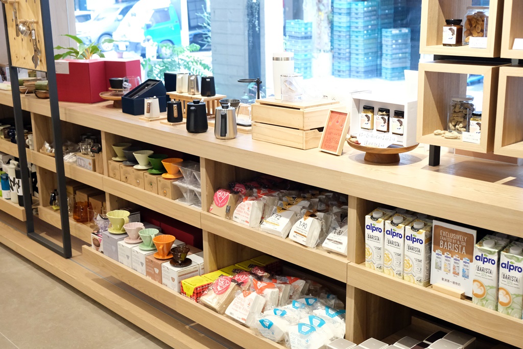 原以為或者咖啡附屬在或者風旅之下,空間應該不會太大,沒想到竟有兩層樓的用餐空間,一樓以吧檯為主,僅提供五組雙人座,其他地方則是展示販售的商品,有咖啡豆、咖啡器具、植物奶、檸檬茶、剝皮辣椒等菜單上有出現的食材,用餐過後有興趣都可以購買,就算只是單純路過也能進來逛逛唷~