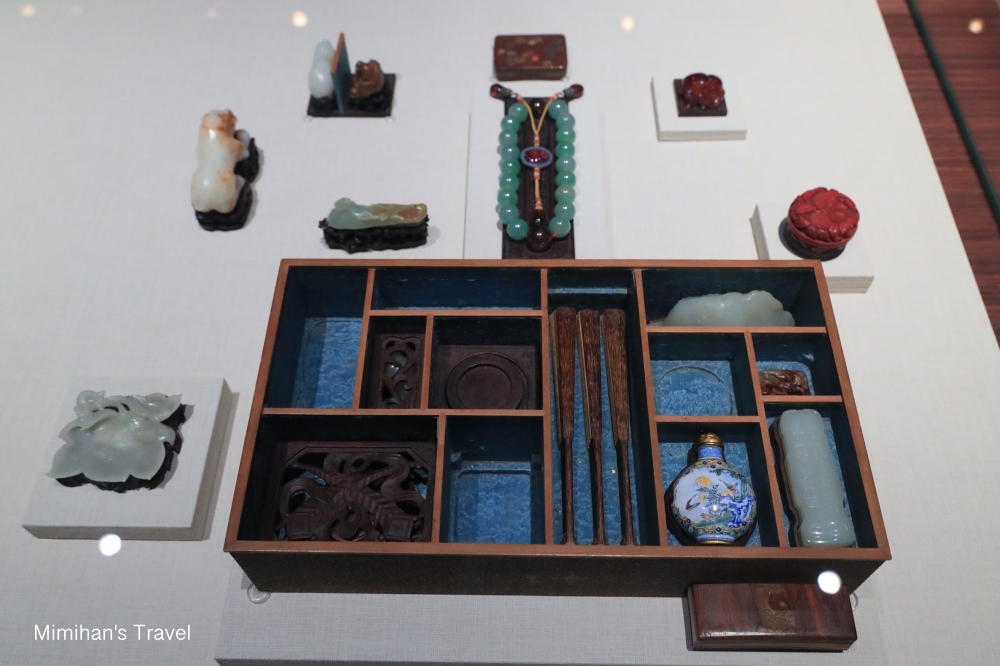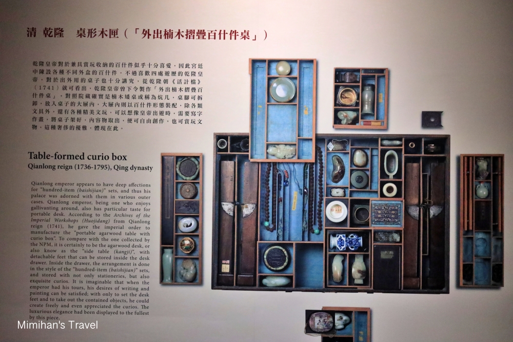 近期展出的「皇帝的多寶格」也很有意思,多寶格可以想像成皇帝專用的玩具箱,來自各地的寶物皇帝賞玩後,會按照可能是種類、工藝或反正他覺得任何適合的規則分門別類,然後再由內務府打造適合的箱子或盒子來裝,不得不說寶物本身很精美,就連外盒我覺得很厲害啊!