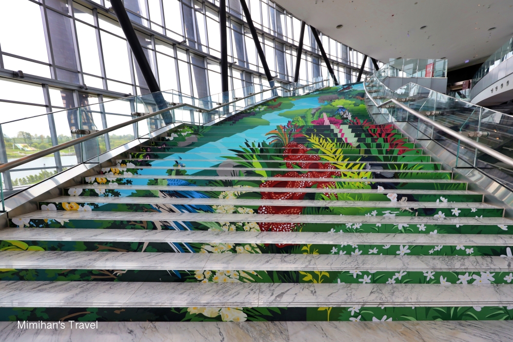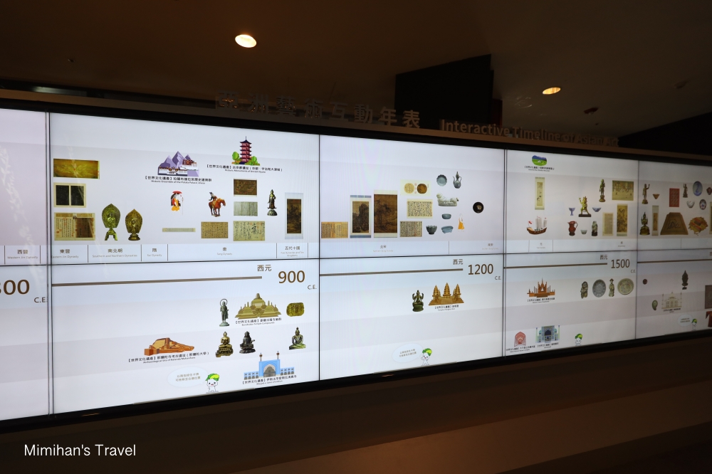 售票處是位於二樓,館方建議參觀動線是從三樓逛到一樓,所以購票之後可以走這條彩繪樓梯,或者搭電梯上去就會看到掃QR-Code的驗票口。另外故宮南院的展覽大約每2~3個月都會更換,每次來看到的展出內容主題都會有所不同。