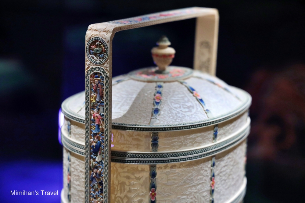 ▲這個雕象牙四層透花提食盒也是超美,可以感覺到工匠的精細雕工,是用機器無法比擬的質感。