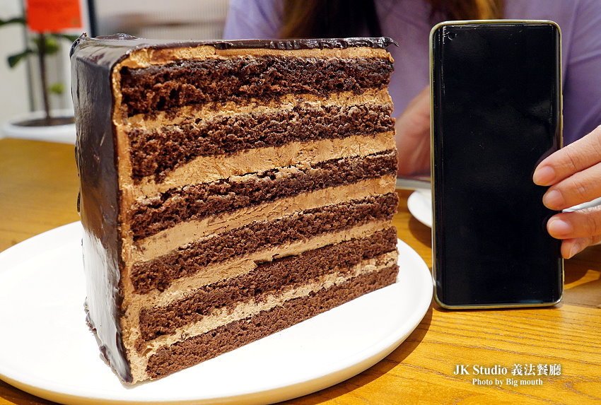 ▼這塊無敵巧克力蛋糕用手機當比例尺就知道有多威了吧~~根本可以3~4個人享用,巧克力控一定不能錯過!