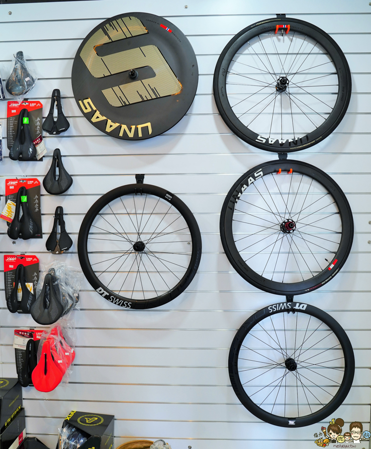 周邊備配展示也相當多,在高雄真的很少見~~~單車倉庫旗艦店會讓人瘋狂!