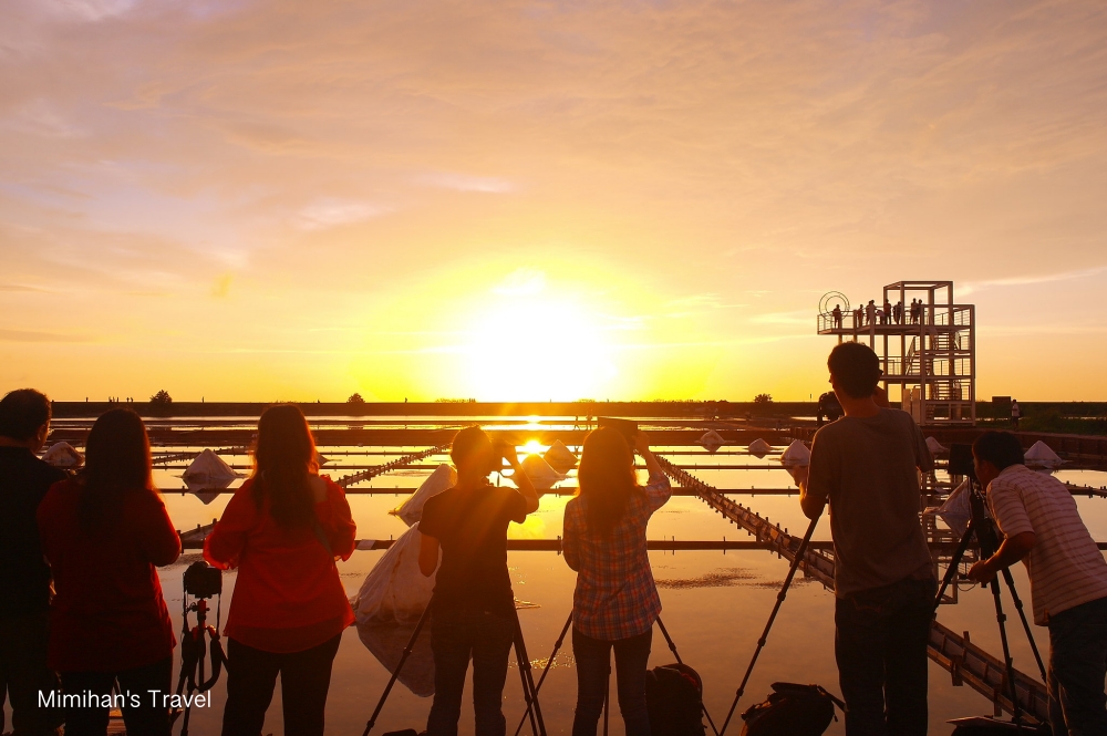 而日落美景更是井仔腳瓦盤鹽田的重頭戲,當天天氣好的話,越接近黃昏人潮會越多,有時還會看到整個鹽田邊滿滿一排腳架,記得第一次看到那陣仗根本讓人以為是要拍國慶煙火。