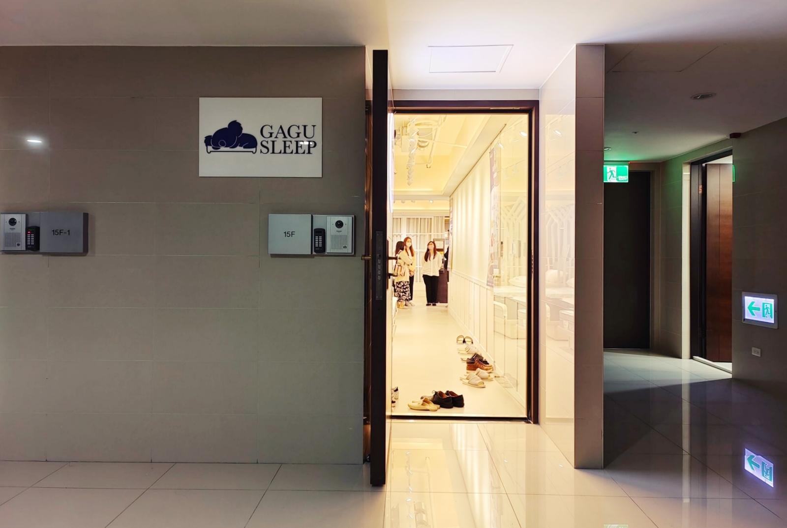 ▼ GAGU SLEEP 台北中山睡眠體驗店雖處於高樓層的辦公大樓,但是內部燈光明亮。抵達後需先換鞋進入,這裡拖鞋跟台中店特別訂製的拖鞋不一樣,不過都同樣乾淨好穿觸感好,覺得店家好像也可以賣拖鞋。(誒)