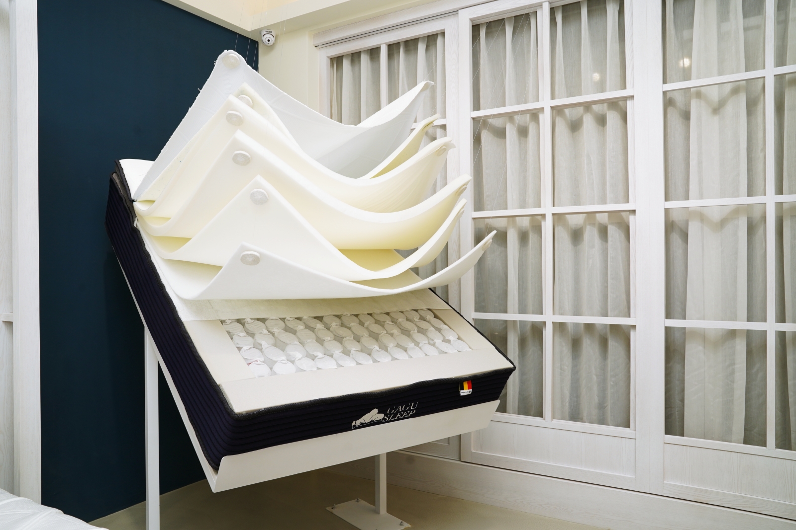 ▼「iceberg比利時冰山床」是 GAGU SLEEP 主打的系列,特性是容易釋放床墊濕氣與熱氣,不易變形。