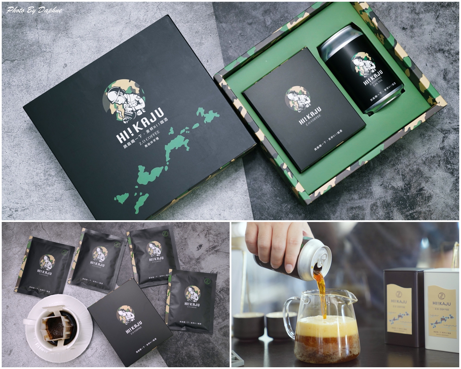 ▼小柒Z.O coffee 也接受客人客製化禮盒,禮盒有兩種招牌商品:「HI!KAJU酒香濾掛式咖啡」 (5入組)、「HI! KAJU咖酒罐裝咖啡」。