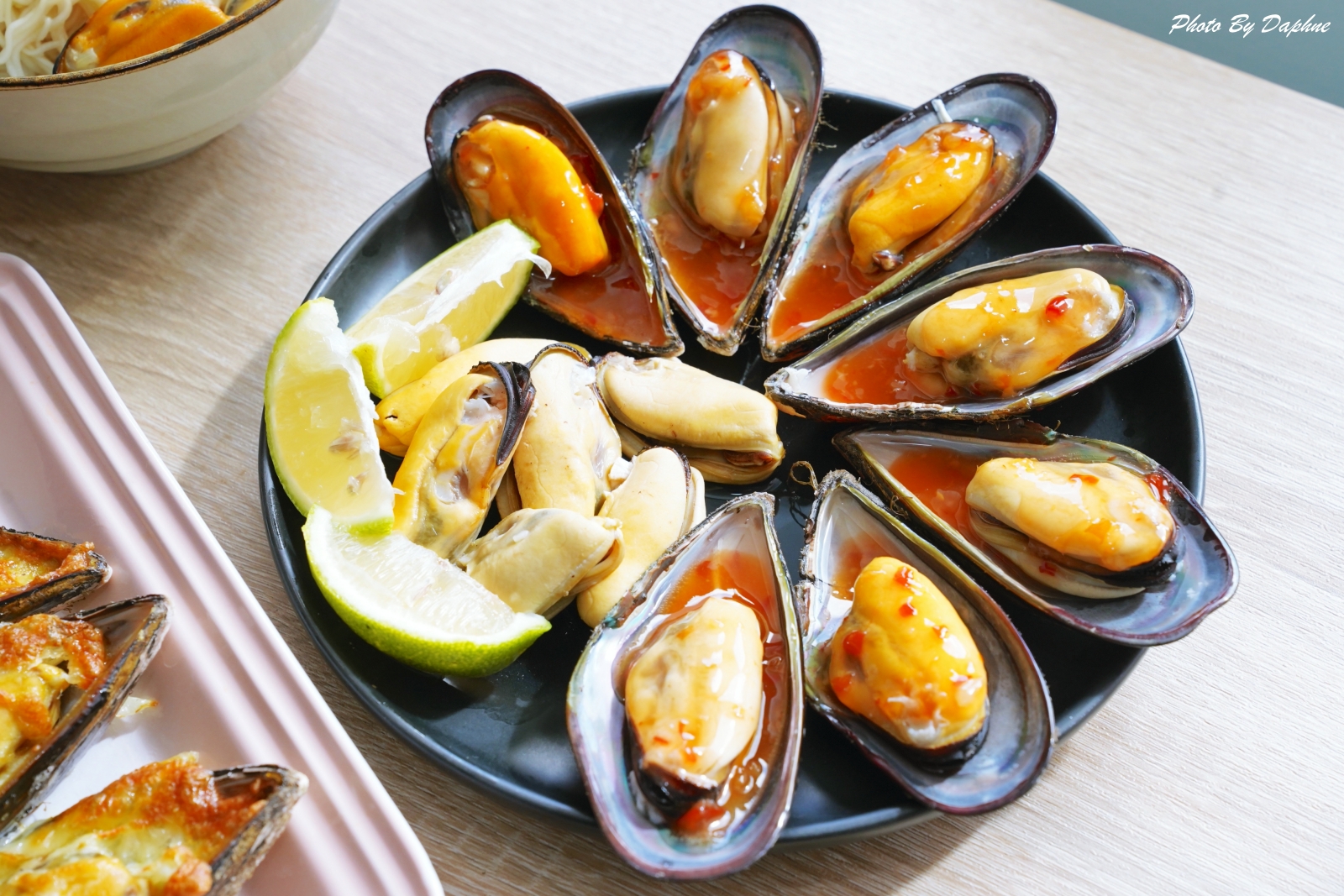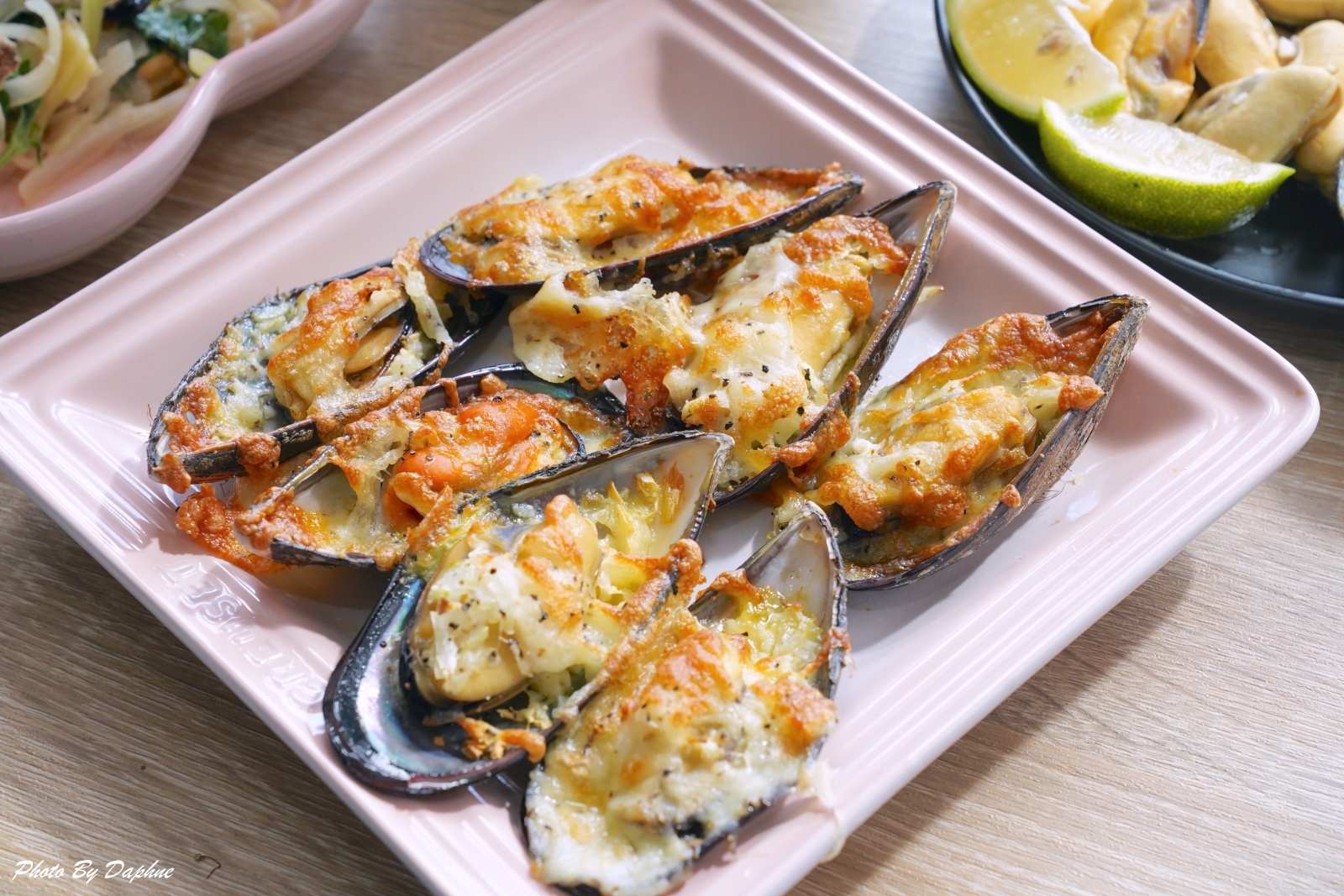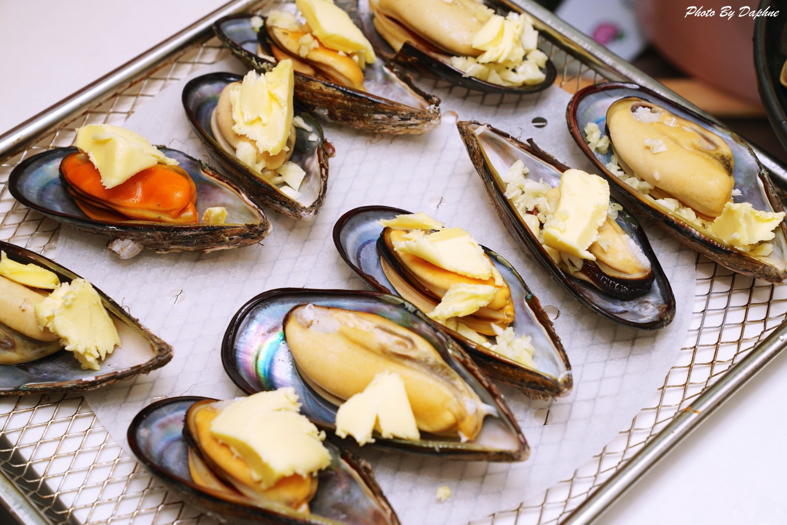 ▼或加入起司、炒香過的蒜末提味,放進烤箱烘烤成焗烤淡菜,想要讓顏色更好看可多放入炒香的甜椒、洋蔥,也增加甜味。