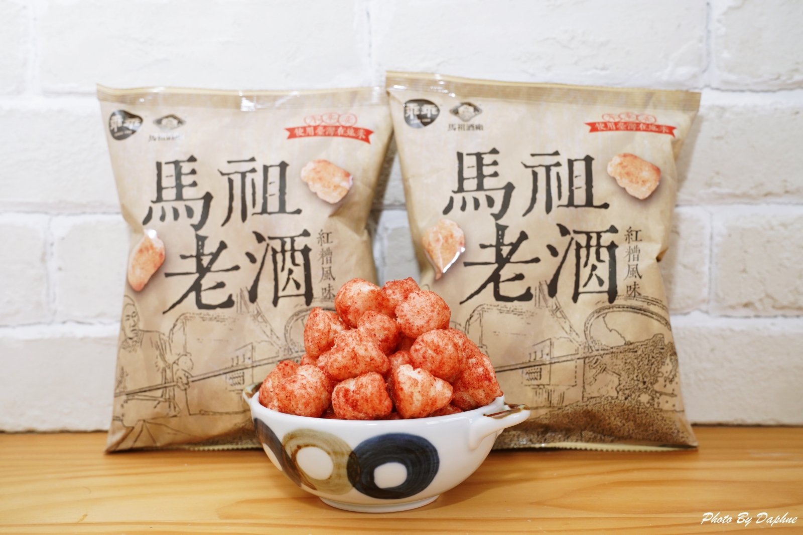 ▼馬祖老酒乖乖馬祖酒廠與零食品牌乖乖合作,用台灣米與馬祖酒廠出產的老酒及紅糟製作,費時一年研發出的產品。