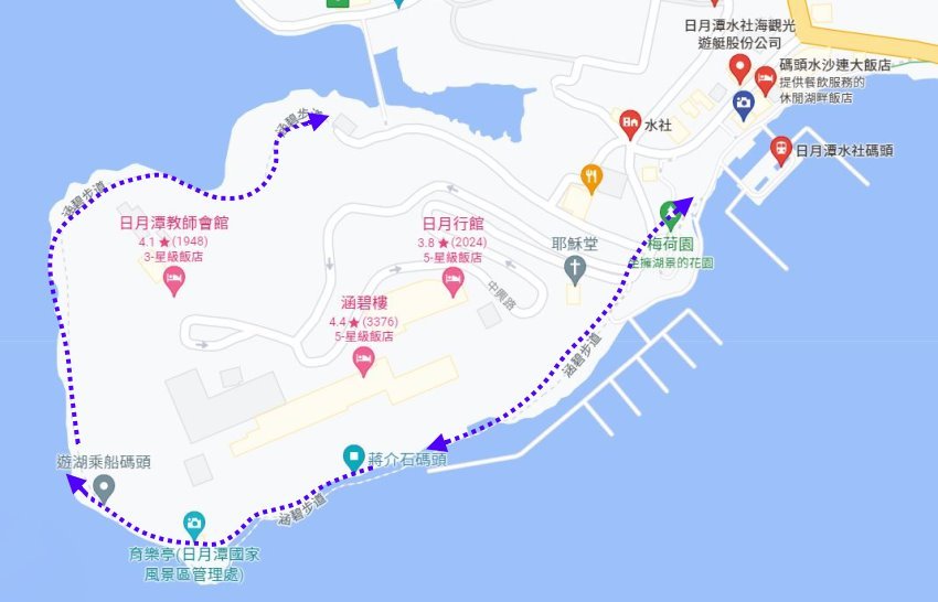 ▼岸邊有大淶閣飯店、鴻賓休閒度假旅棧、水沙連大碼頭等,住在這裡免出門,走到陽台就可以看見日月潭美景,也是熱門住宿選擇!