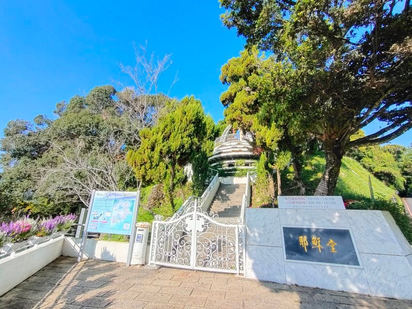 ▼「耶穌堂」為民國60年蔣介石夫婦造訪日月潭禮拜祈禱興建而成,921大地震時外圍客廳宿舍區曾經龜裂傾斜,經92年修復後又開放參觀,現在已經是拍攝婚紗的熱門地點!可惜當天時間太早還沒開放,只能從外觀拍照過過乾癮~
