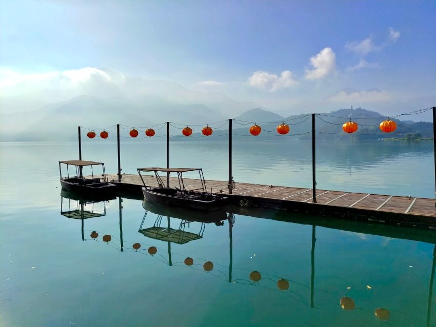 ▼這裡就是許多網美網帥會特地來拍美照的地方啦~~蜿蜒的木棧道搭配東方紅燈籠,加上孤舟兩艘,襯上迷濛的遠山,拍起來超級夢幻~~