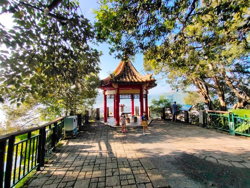 ▼蔣公涼亭,可以眺望整個日月潭的全景,加上群巒疊翠、湖光山色的美景,也是當初蔣介石最愛駐足的地方,所以特別蓋了紀念亭留念!