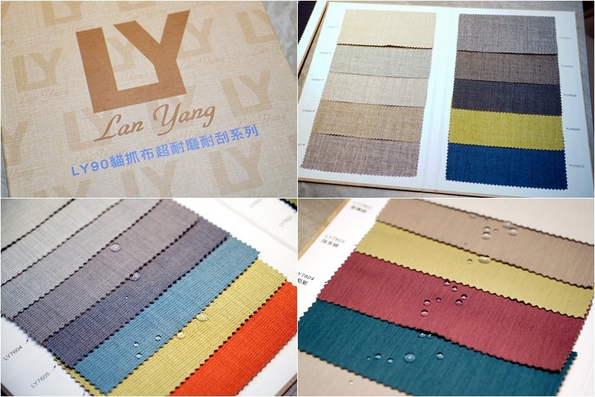 ▼此外也有貓抓布超耐磨耐刮系列,不僅耐磨係數更高,而且同樣也有防潑水、好清潔等優點,顏色選擇也不少!就算真的不小心滴到醬油等有顏色醬料,也可以先擦掉再用中性清潔劑以同心圓的方式擦拭,沒多久就乾淨溜溜囉!
