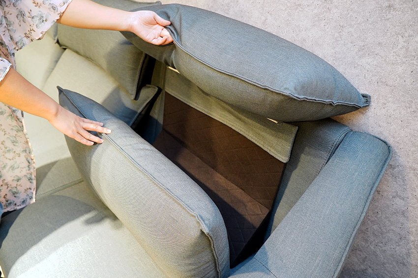 ▼不管是想要正坐、躺坐都沒問題,採用科技棉填充的靠墊蓬鬆柔軟又帶有彈性,移動時也不會走位,想要直接往後躺來睡個午覺也沒問題(笑)!