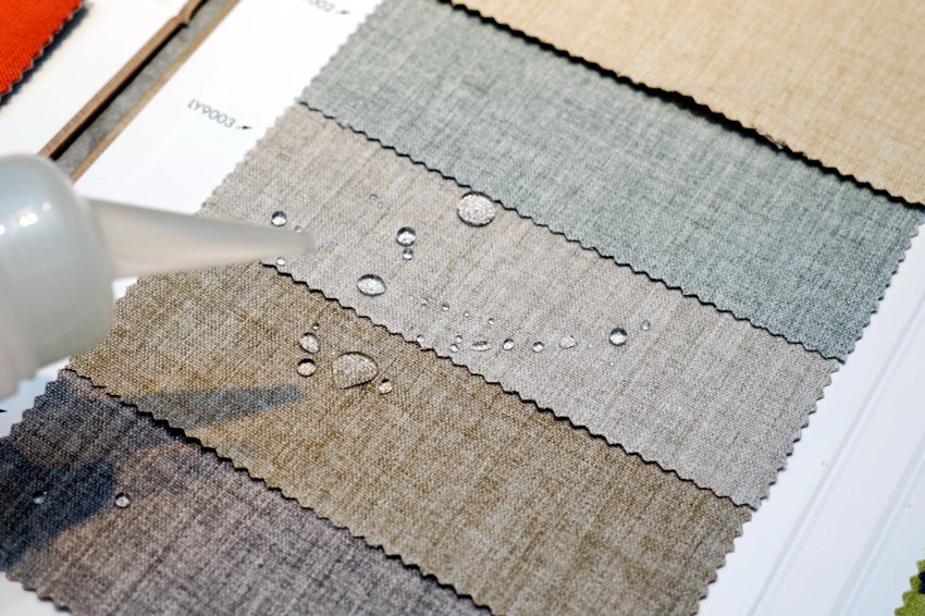▼現場服務人員還做了實驗給我們看,只見水滴在布料上頭也不會馬上滲透進去,反而凝結成水珠狀,輕鬆擦拭就能一秒變乾爽!