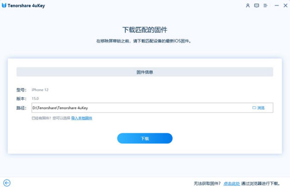 步驟二:將 iPhone 連接至電腦,點擊「開始」。接著,軟體會匹配到最適合的韌體,點擊「下載」按鈕。