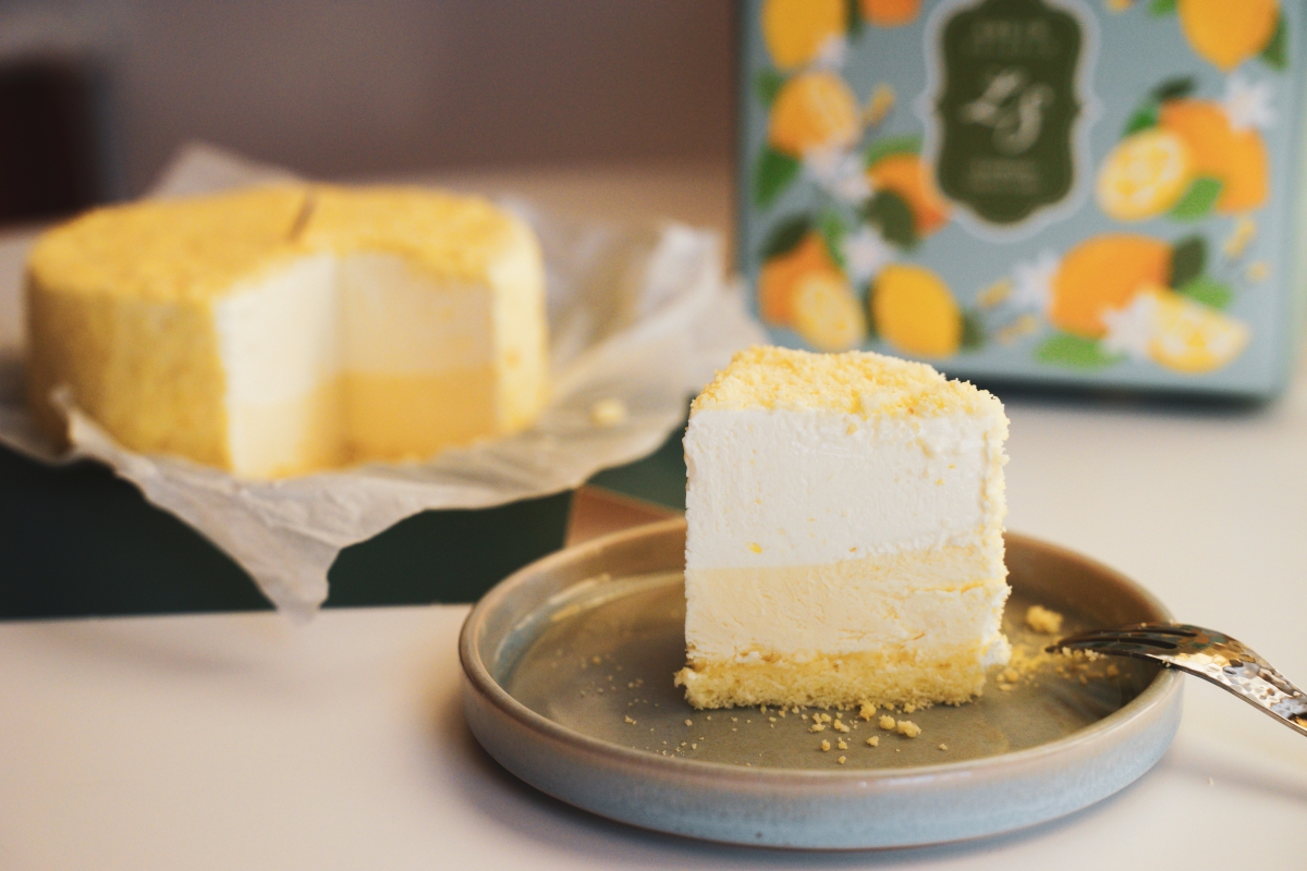 最上層有漂亮的蛋糕雪花,接著是原味生乳酪、檸檬乳酪蛋糕,底部是海綿蛋糕。使用台灣產地直送的新鮮檸檬,搭配北海道十勝四葉奶油乳酪製作而成,口感綿密柔滑,檸檬酸香與生乳酪的獨特風味融合在一起,口感濃郁卻不膩口,好吃耶!我覺得適合全家大小,送禮自用兩相宜,而且冷凍可以保存十天,每天飯後來一塊,太舒服了~