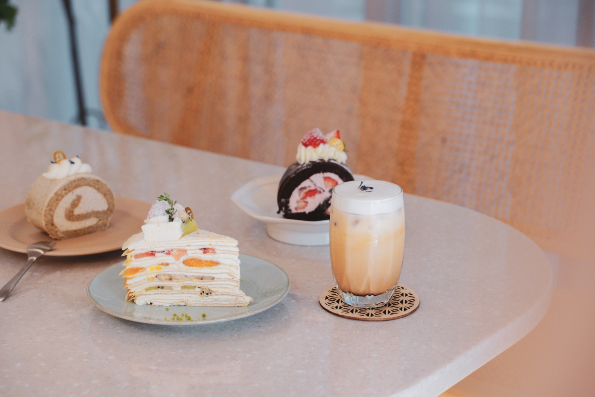 飲品提供咖啡、濃厚鮮奶茶、熱茶,甜點的部分每日新鮮現做,以甜點櫃提供的品項為主。竹北店有自己的烘焙空間,所以都是當日製作的新鮮蛋糕,就連生日蛋糕都是,店長也有說他們的生日蛋糕只能放一天,很堅持蛋糕的品質。