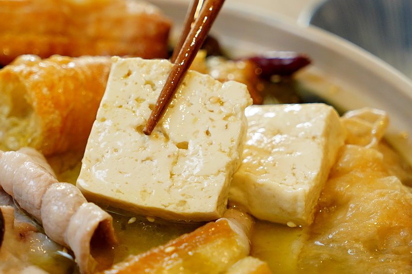 ▼板豆腐也很適合放進裡頭烹煮~~裡頭的孔洞吸附滿滿湯汁,吃起來帶點微爆漿的口感,還有濃郁的豆香,搭配鹹香酸辣的湯頭也很適合!