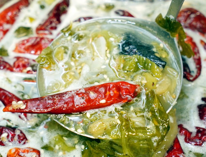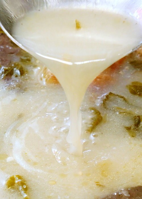 ▼醇白的湯頭味道稍重,帶有濃醇的酸爽辣勁,比較適合拌飯或是涮煮食材,如果喜歡喝湯的朋友可以稍微稀釋一點比較剛好!