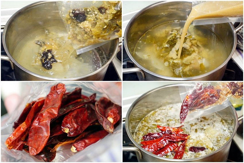 ▼等到水滾後,再將獨門醬料包、酸菜醬料包、辛香乾辣包倒入鍋中煮個3分鐘左右~~一下鍋就能聞到濃濃的酸勁辣味,香氣不斷撲鼻而來,讓我們口水直分泌;且自己在家煮的好處就是可以視個人口味調整濃淡,還可以加料加到爽!