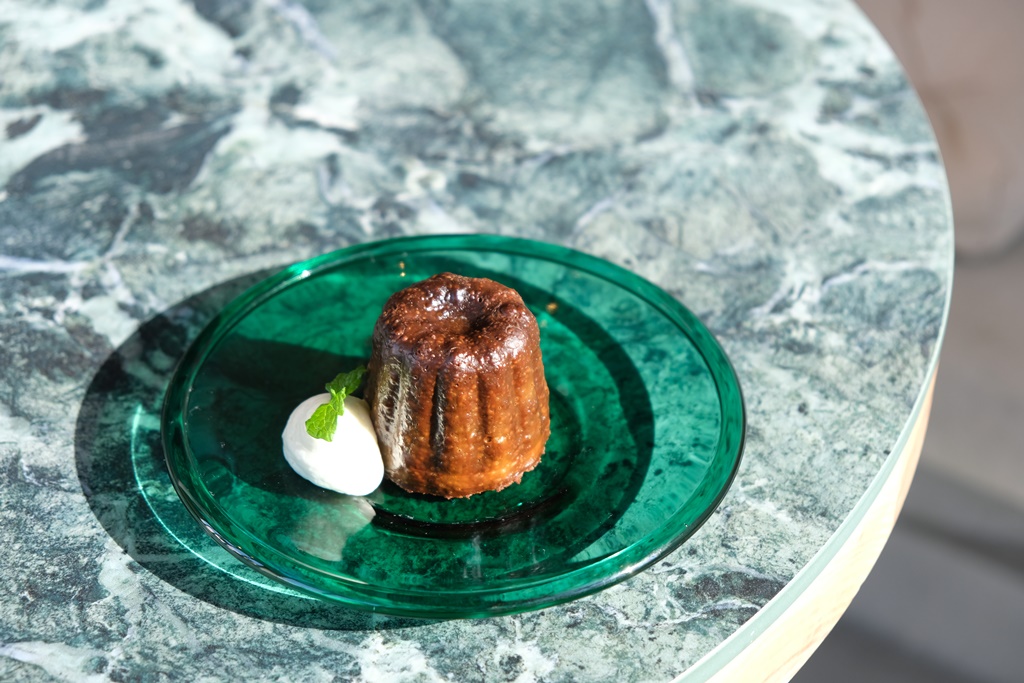就在我們吃得差不多的時候,老闆曾昱嘉剛好出來跟客人聊天,後來我們聊到好可惜沒吃到想吃的甜點,沒多久店員就端上這盤可麗露說是老闆招待的,超開心!謝謝老闆惦記著我們的對話,也剛好遇到可麗露再次出爐~今天的可麗露內餡是抹茶口味,外脆內濕潤的口感好迷人,下次再訪肯定要吃到肉桂捲(握拳)