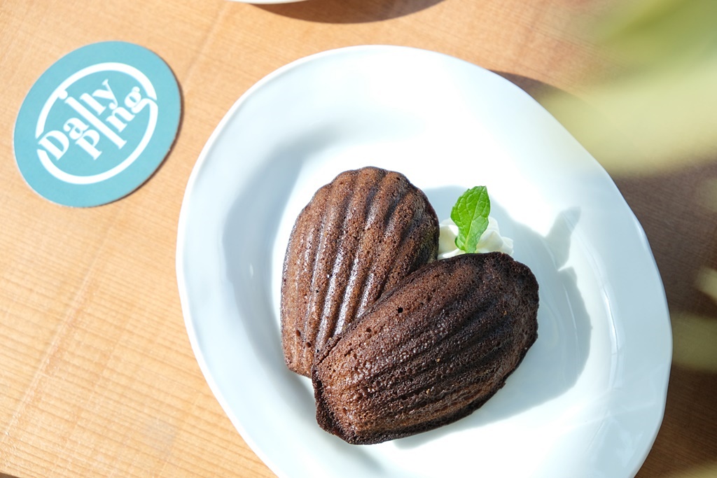 原本甜點我們想吃可麗露跟肉桂捲,結果今天生意太好,到下午剛好賣光了,等不到出爐只好退而求其次點瑪德蓮…一份有兩個,可惜口味不能任選,只好跟朋友一起分享囉!當天口味有原味、伯爵蘋果跟金萱茶,店家推薦伯爵蘋果,可以吃到蘋果餡料,類似蘋果派的內餡,而瑪德蓮本體是伯爵茶濃郁的香氣,口感濕潤不會太乾~