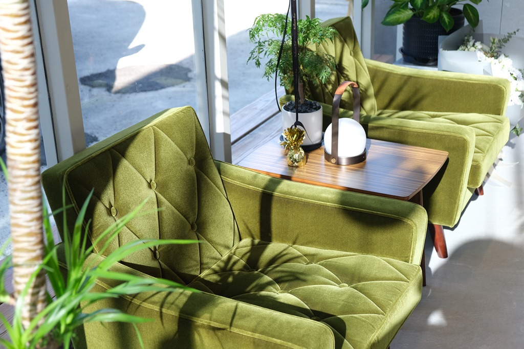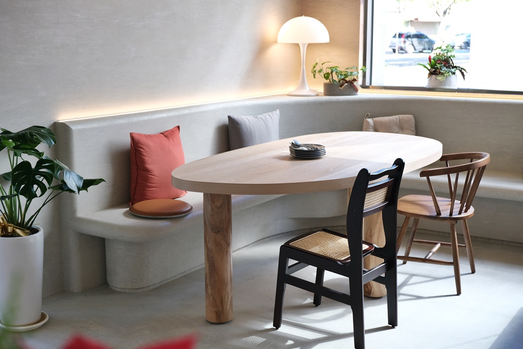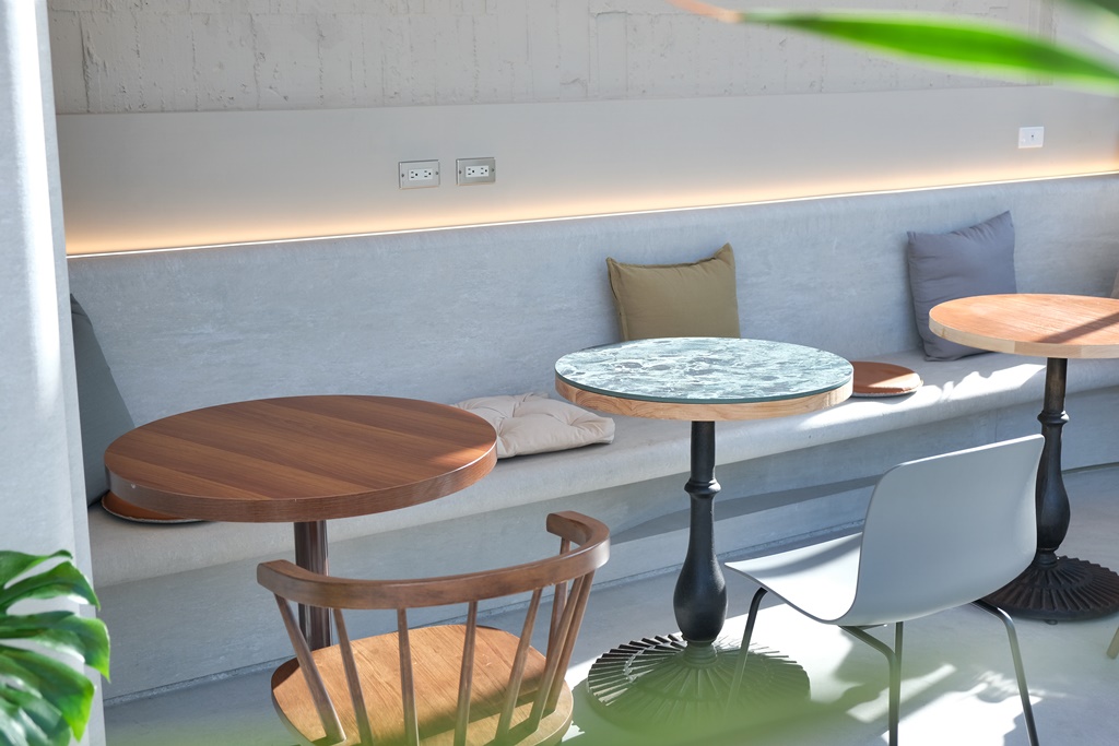 Daily Ping 的外觀是純白色的玻璃屋,入口處設計成洞穴風格延伸到店內,白天來整個屋子裡都能感受到陽光的灑落,尤其是挑高玻璃屋下的座位更是絕美,每個角落都質感爆棚,空間感愜意舒適!