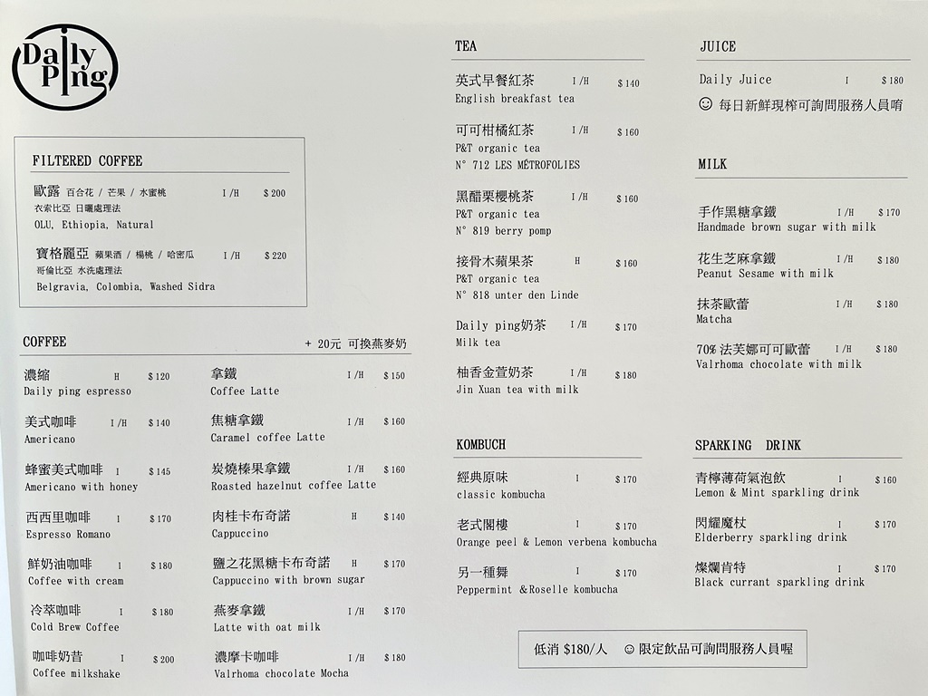 • 每人低消 180 元