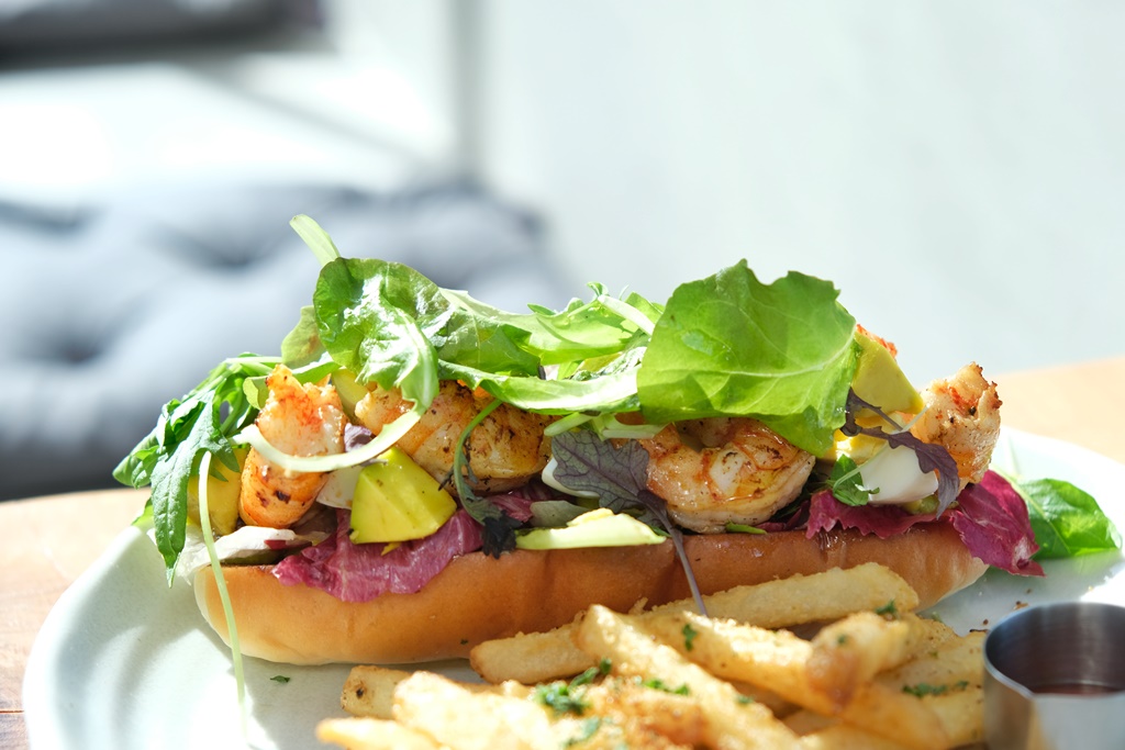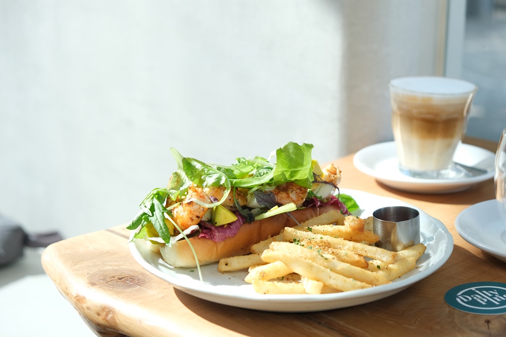 這道為季節限定,以柔軟不刮口的手作潛艇堡夾入生菜、新鮮酪梨、酪梨醬、鮮蝦,配料滿滿,新鮮酪梨與酪梨醬加分很多,整體口感濕潤有層次,而且味道調的不錯、很清爽,每一口都好吃,附餐可選薯條或沙拉,灑上香料粉的薯條味道很像之前麥當勞的搖搖薯條,我覺得好涮嘴啊,忍不住一口接一口,以附餐來說份量也誠意十足!
