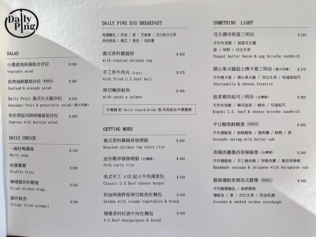 試營運期間,只要結帳時出示追蹤店家 IG「Daily Ping」的手機畫面,即贈綜合野莓奶酪一個唷!