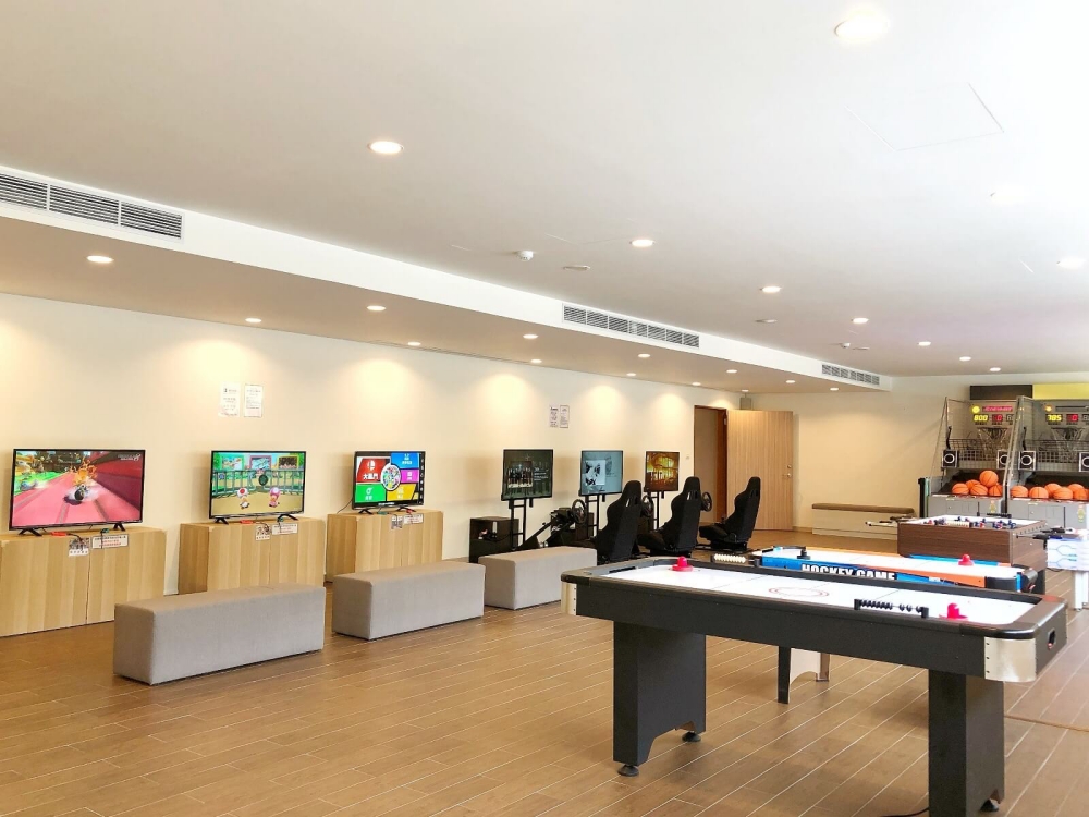 品文旅的親子遊戲室是大人小朋友們打發時間的好地方,裡面有賽車、Switch可以玩(預約登記),不用投錢的籃球機、手足球、打地鼠等遊戲機等;還有一區準備了家家酒、小溜滑梯等是給小小孩玩的地方。