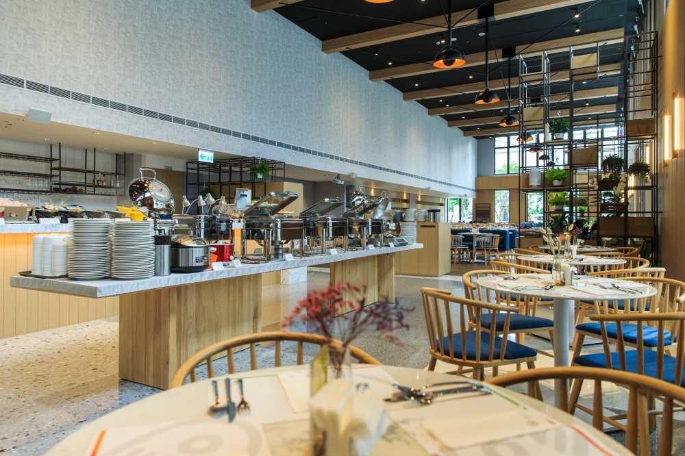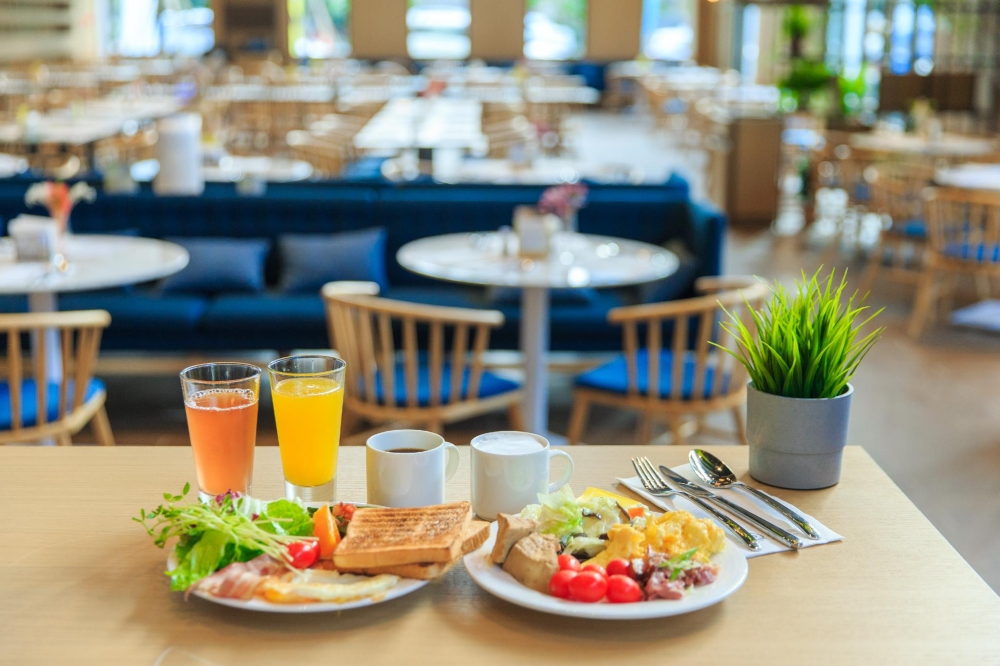 採自助式方式供應,清粥小菜、冷盤區、熟食區、西式麵包蛋糕、生菜沙拉、水果點心⋯種類不少,還會準備現燙青菜、有機豆漿、關東煮等比較有特色的餐點,整體我覺得CP值蠻好的,而且用餐空間採光好很舒服。