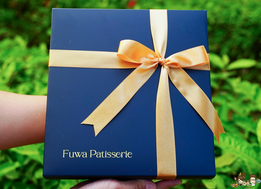 可以吃到蛋糕又能吃到夏威夷豆太妃糖,禮盒很簡約、大氣緞帶凸顯質感