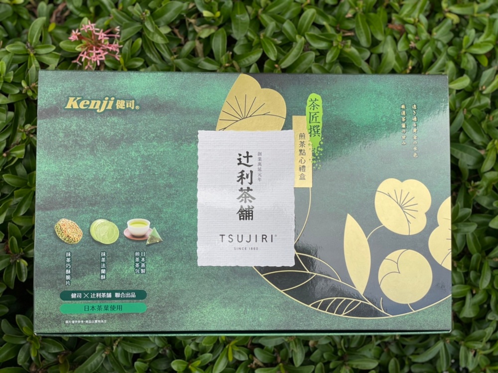 「健司X辻利煎茶點心禮盒」煎茶茶包為 100% 日本進口茶葉, SGS 檢驗合格,榮獲農林水產大賞茶鑑定士認可的上等茶葉,所特製而成的煎茶茶包,採用立 體茶包使茶葉完全舒展,以 60-80 度熱水沖泡,展現濃郁茶香及回甘尾韻,茶色翠綠清透,過年期間從早吃到晚,泡杯煎茶包來喝是解膩小撇步。