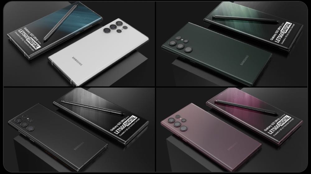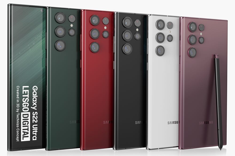 首先是顏色方面,S22 與 S22+ 將會有粉金色、綠色、白色與黑色四色; S22 Ultra 則會有綠色、勃艮地紅、白與黑四色,而這些顏色也似乎與網路上的精美渲染圖相去不遠。