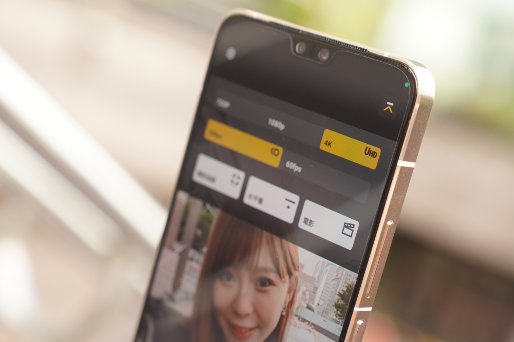 除此之外,前鏡頭還支援 4K 美顏錄影功能,對於想要拍攝 IG 限動影片的人來說這功能真的超棒,不用切換到主鏡頭盲拍,使用前鏡頭自拍同時就能得到美顏和高畫質的效果,超級方便。