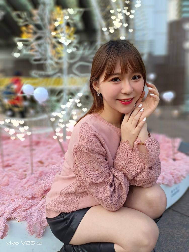 vivo V23 5G 還有個很有趣的拍攝功能,那就是可以改變人像模式拍攝下,背景虛化的光點效果,一般背景虛化時,背後的光點可能變成圓形或橢圓形,但只要透過改變光斑效果,就可以拍出可愛的愛心、星芒、蝴蝶、或是落櫻效果,輕鬆呈現有趣的拍攝成果。