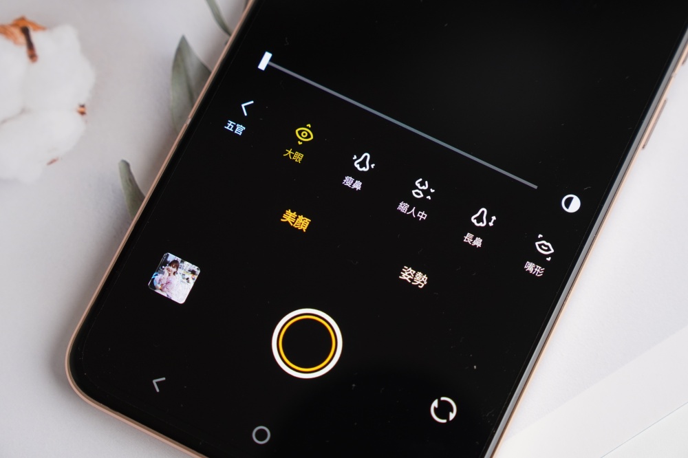 如果 vivo V23 5G 只有硬體厲害的話那就太小看 vivo 了,vivo V23 5G 搭載的 AI 人像功能也超強,在美顏模式中可以針對磨皮、膚色、美白、正臉、側臉、五官等六大重點進行調整,每個重點項目都還可以微調,像是調整大眼效果、瘦鼻、縮人中、調整眼型、眼距等等,一調整立即見效,速度比醫美更快,加上每個項目都可以細部微調,拍出來的照片彷彿天生美肌般自然,真的是非常厲害。