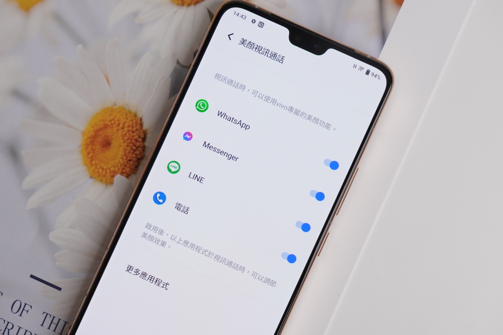 另外還想一提的就是,vivo V23 5G 支援美顏視訊功能,像是台灣很多人愛用的 LINE、Messenger 或是 Whatsapp 都可以使用美顏視訊,在疫情影響、視訊功能越來越常使用的情況下,有 vivo V23 5G 在手隨時都能美美的上鏡,超棒!
