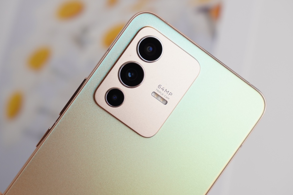 vivo V23 5G 不只自拍很強,主鏡頭的拍攝功能也非常厲害,主鏡頭採用 AI 三鏡頭配置,三鏡頭分別是 6400 萬畫素 f/1.89 主鏡頭、800 萬畫素 f/2.2 超廣角鏡頭、200 萬畫素 f/2.4 微距鏡頭。